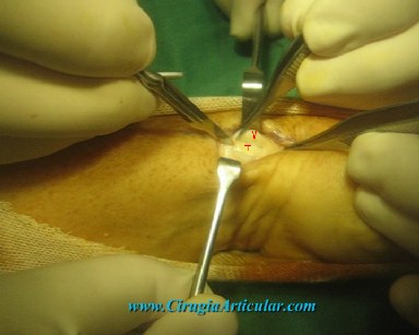 Resultado final tras la liberación y extirpación de un fragmento de vaina, podemos apreciar que los tendones ya están totalmente liberados.