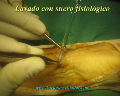 Lavado final con suero fisiologicode la herida quirúrgica.