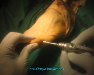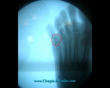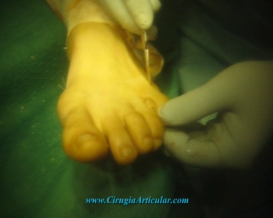 Se introduce una fresa giratoria con la que se corta la falange primera del 5º dedo.